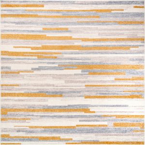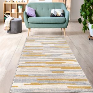 Abstract Striped Rustic Minimalist Contemporary Area Rug – Modern Carpet for Living Room, Bedroom, Office, Entrance, and Hallway – Mustard Yellow, Grey, and Beige