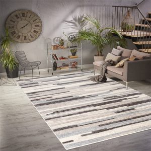 Abstract Striped Geometric Minimalist Contemporary Rug – Modern Carpet for Living Room, Bedroom, Office, Entrance, and Hallway – Cream and Beige