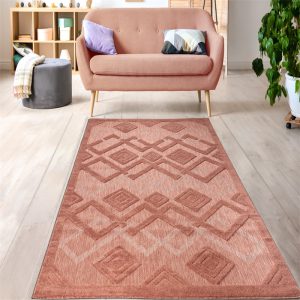 Geometric Modern Contemporary Area Rug – Durable Premium Carpet for Living Room, Bedroom, and Office – Salmon Red, Blue, Cream Beige, Grey