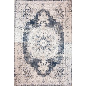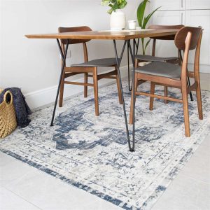 Blue Traditional Distressed Flat Low Pile Room Rug