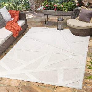Cream Beige Geometric Modern Minimalist Contemporary Outdoor Indoor Area Rug Carpet For Patio, Porch, Dining Area, Balcony, Living Room, Bedroom