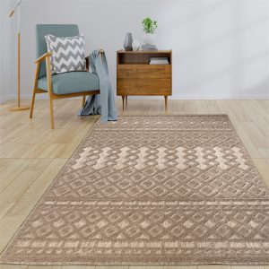 Geometric Modern Contemporary Area Rug – Durable Premium Carpet for Living Room, Bedroom, Office, Entrance, and Hallway – Brown, and Cream Beige